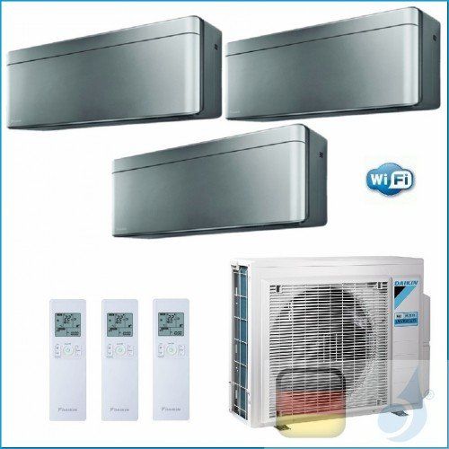 Klimaanlagen Daikin Trio Split 7+7+18 Stylish Silbernen A++/A++ Inverter-Wärmepumpe Hochleistungsklimaanlage mit Fernbedienung inklusive. Klimaanlage mit Luftentfeuchter - Steuerabzug - Kälte. Japanische Spitzentechnologie mit hochwertigen und zuverlässigen Komponenten.